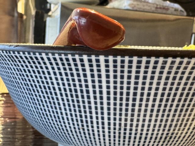 チャーシュー(豚ちゃん?)の脂が半分以上。残念。汁の中で育てたけど、ぶにゅぶにゅで小学生の時の豚の脂肉みたいでダメだった。単に部位がハズレ。