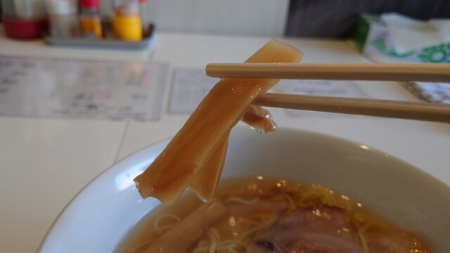 澄んだ鶏清湯スープの旨味と白醤油のコク深さが、たまらなく旨いのだ。