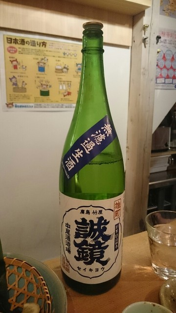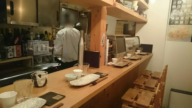 席はカウンター席のみで、壁面には一升瓶がずらりと鎮座。