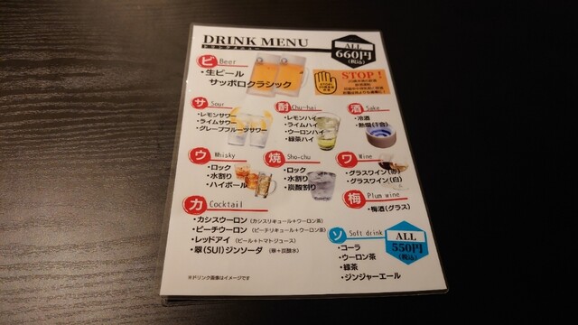 26/01/04のせんべろ(ドリンク2杯付き) 1100円