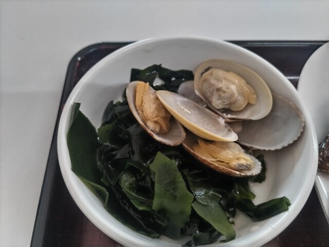アサリ三個にわかめ。わかめいらないから五個が良いなぁ(笑)