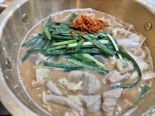 赤鬼(唐辛子)をたっぷり入れたもつ煮は身体も温まるし。