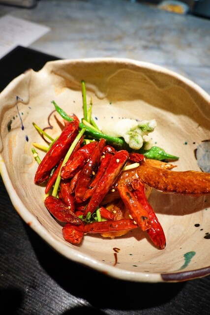 ★赤鶏手羽先 タラの芽 麻と辣炒め