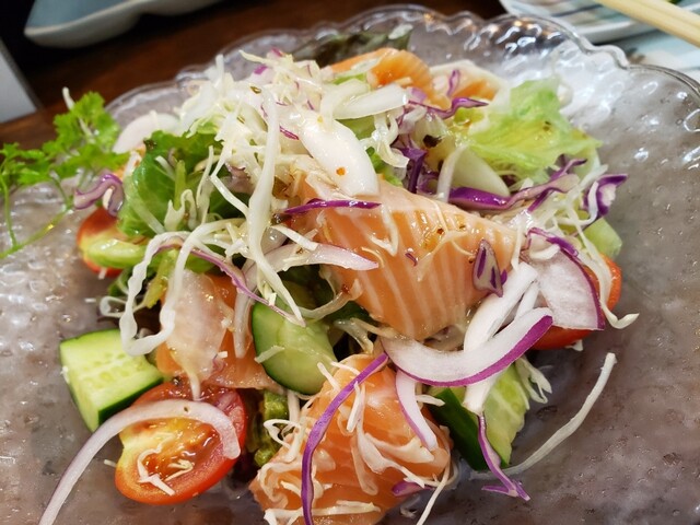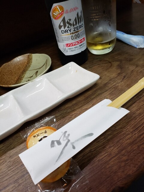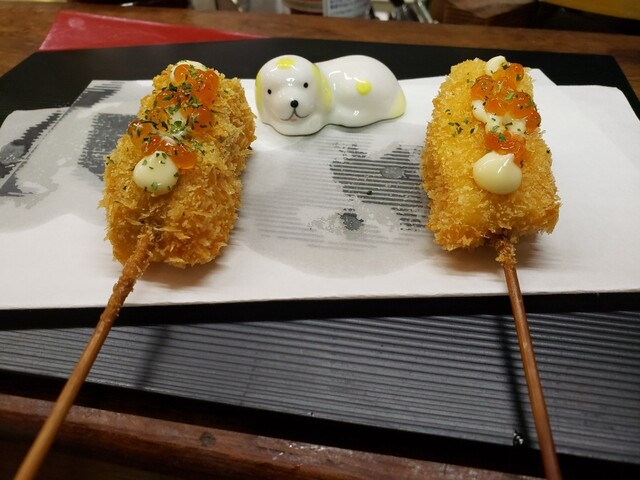 ホルモンの串カツ、アスパラ豚肉巻き、うずらベーコン、アスパラベーコン、ミニトマト、砂ずり、サーモンと、サーモンサラダを注文。体調もあり、ノンアルコールビールで頂きました。✨✨✨✨✨やはり最高ッス❗