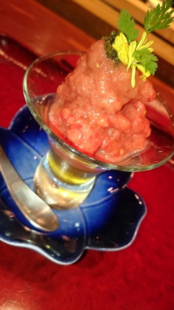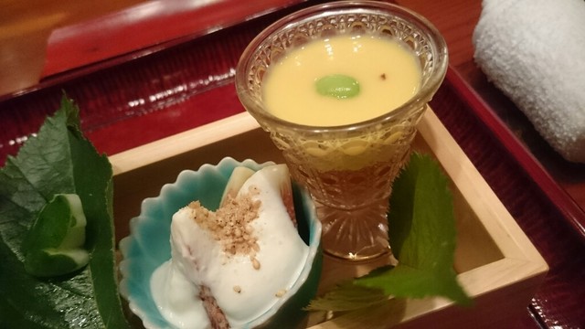 ◎なんと、デザートのような先付け!『トマトソルべとゼリー』え!このクオリティーで御通し?マジ⁉・・・✨一口で真っ白な空間✨『旨さは時を止める』のか!?✨~
