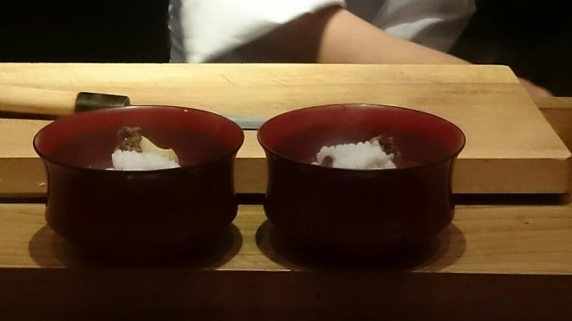 碗蓋の中にカタツムリが!風情ですね~✨大将曰く『この時期しか使わない碗』だとか。粋ですね~