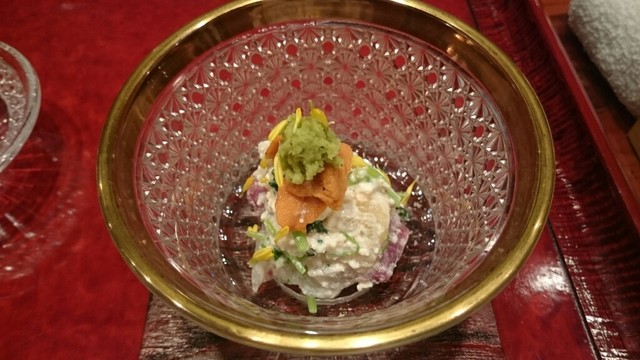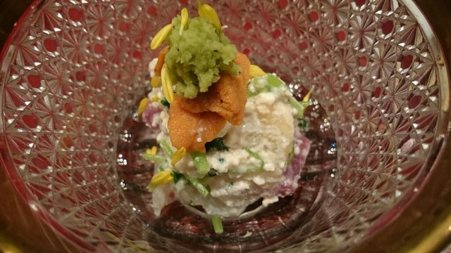 ◎おぉっ✨見た目も涼しげなガラス碗の中にはウニとワサビをあしらえた『刺身にかわる進化型白あえ』が!旨い❗人生初体験でした。