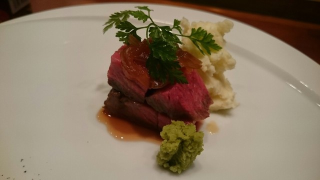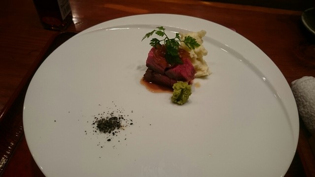 ◎更に皿に肉っ!A5ランクの阿波牛を甘辛く焚いてマッシュポテトを付け合わせに登場。…旨いしかない❗