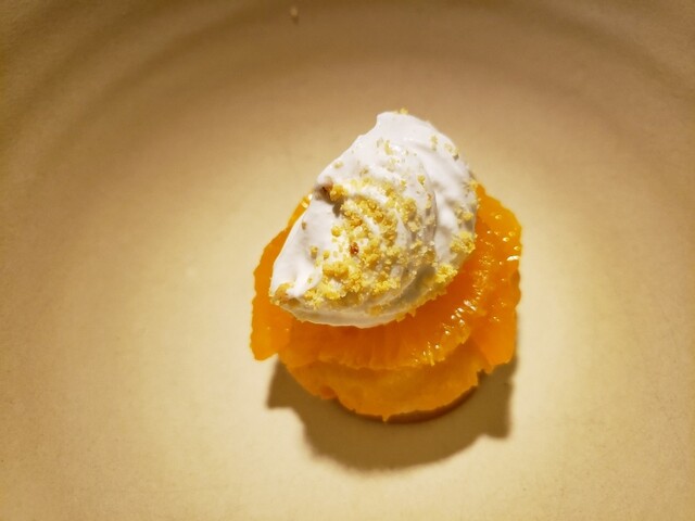 ぷりッぷりのヒラマサ!→魅惑の白子(ブリオッシュ付き)→真珠貝→鱸とホウレン草❗️かーらーの~神戸牛!→青苺のソルベ→ミカン