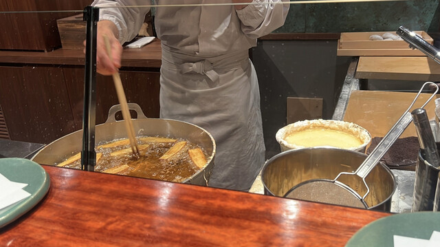 いつも通り脱水して旨みのました食材がカラッと揚げられていきます。そしてなんと一年振りに来てみると店員さんが大将以外に3名になってました!