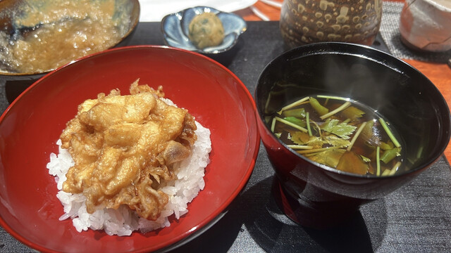 →こちらもお初。釜炊きごはんにトロトロの白子天ぷらを崩し混ぜて爽やかなカボスを搾りかけて頂く一品。口いっぱいの幸せ!