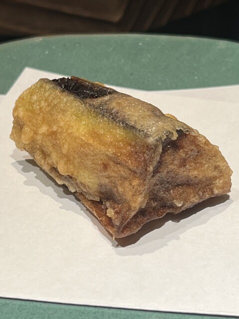 いつも通り脱水した旨みはそのまま、外見はしっかりカラッと中は熱々ふわっととろっと揚げられていきます。以前の衣より見た感じ粉の混ぜ具合などが変わった感があり、タネにより少し空気を含めた感じも受けつつ頂きました。