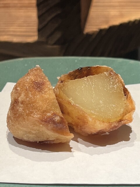 →皮目はしっかり揚がり、中身は金時のようにとろけて、さっぱりした甘味で旨うまでした。