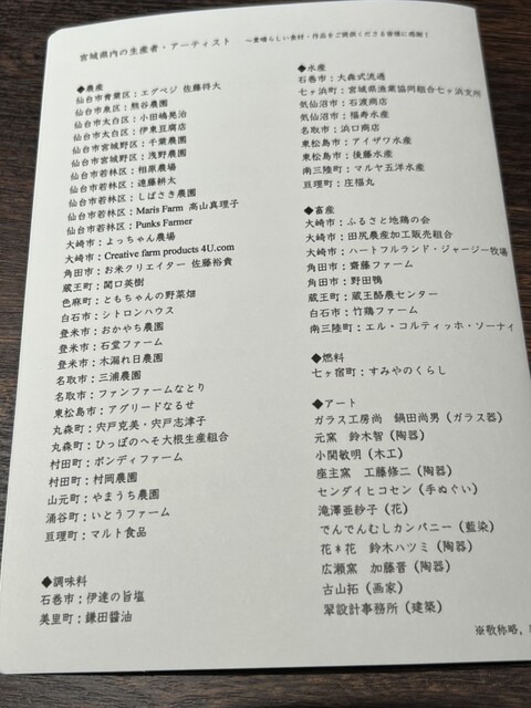 メニュー表にもある広瀬川と仙台を望む風景画は、お店の壁に掛かっていて、お店からの眺めそのままに地産地消を自負するクロモリさんらしい水彩画でした。