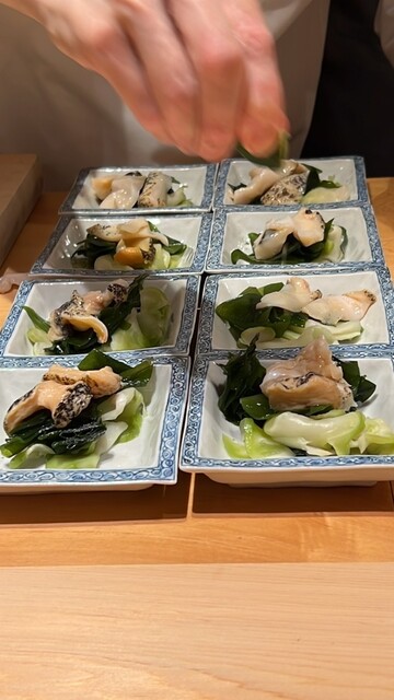 →ごろっとしたつぶ貝と、わかめ、緑ザーサイによだれ鶏風の醤油ベースの中華風ダレでさっぱり美味しく頂けました。