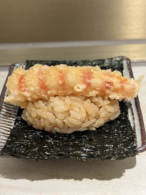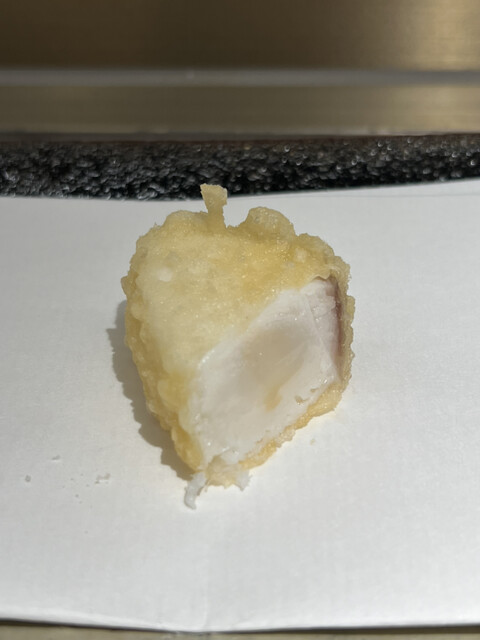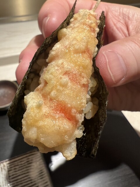 →少し焼いて香ばしさを付けてから天ぷらにしているとのことで、天ぷらなのに香ばしさが香り、ミソは脱水され濃厚な味わいで、それでもふわりと旨うまでした。