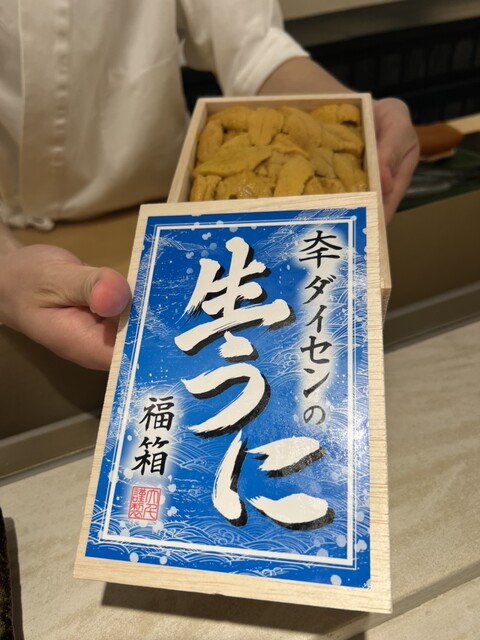 →ダイセンの青森県大間産紫雲丹をたっぷり海苔で巻いて揚げた一品。中はしっかり火で温まりつつ、生感のまま、とろりと濃厚で旨うまでした。