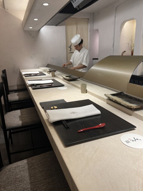 20時の回に伺ったところ、他の3名さんもキャンセルが出たとのことで、なんとカウンター1人貸切となりました。通常はカウンター12席、2人の揚げ手で供されますが、本日は大将 市原さんのしかも独占で色々お話を伺いながら、お弟子さんも色々説明やお話頂き、楽しく食事することが出来ました。 ※話は少し後編に、、、