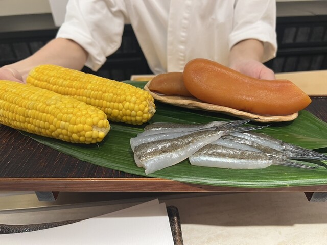 →車海老、あおりいか、とり貝、平貝、金目鯛、真鯛、いんげん豆、こしあぶら、おくら、さつまいも、スイートコーン