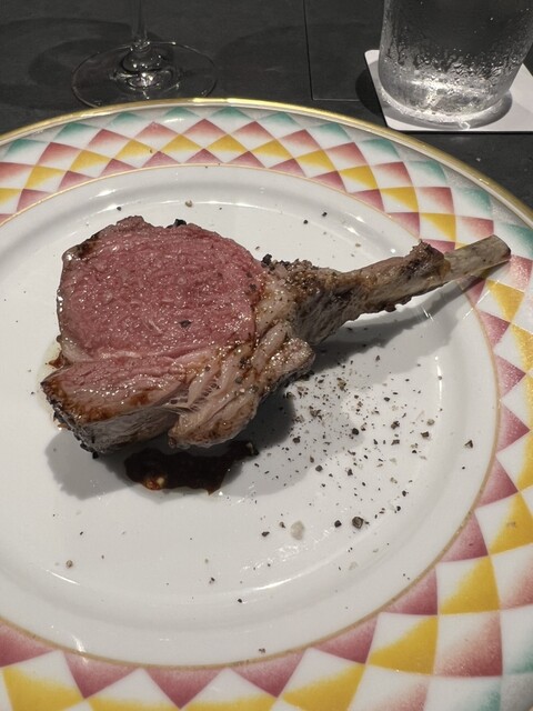 →外はカリッと中は綺麗な赤身レアながら、しっかり熱が入り、肉肉しくボリュームたっぷり旨うまでした。本当は骨そばまで頂きたかったのですがあ、薬味に自家製粒マスタード・胡椒・レモンと共に。野菜も焼き加減よく、美味しく頂けました。