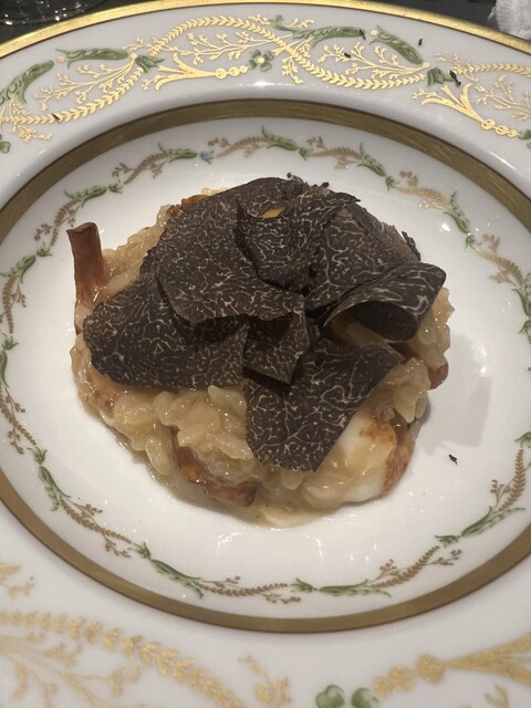 →初めて食感の百合根は茹で過ぎずカリっと甘くアクセントに、濃厚リゾットに黒トリュフが掛かり香りも含め極上旨うまでした。