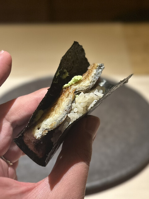 【一言】松山では食べログさん評点堂々1位のくるますしさん。その点数以上の洗練された一貫と空間に圧倒されました。予約も取るのも困難なのでお早めのご予約をお勧めします。いつもは2部制でお店を営業されておりカウンター8席のみの上質な空間で美味いお鮨とお酒を堪能できます。どの料理も想像を超えてくる美味しさですが特に言葉にならないぐらい美味しかった料理は鮑と大トロと青ウナギでした。鮑はコリッコリの食感にソースが相まって上品な一品。本当にこんな贅沢していいのかと我を失うぐらい噛み締めて食しました。笑!大トロはいうまでもなく脂がすごい。シャリの大きさといい全てが黄金比の一貫でありプロの力をこれでもかというくらい魅せて頂きました。そして青ウナギ。希少価値の高い食材を贅沢に炙った海苔で巻いて一口。まさしく極上の極み。日本酒も進む進む…最後の上がりまで完璧なひと時を過ごせました。また高平さんをはじめとする従業員様の気遣いや気配りも圧巻。本当に最高です。松山にお越しの際は是非立ち寄ってみて下さい。固定概念とは何かを考えさせられる至極の一貫を是非…ご馳走様でした!