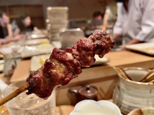 ここは昔から、福島県は阿武隈山脈裾野で育った伊達鶏で勝負している。何故ここが凄いか?店長の山口大将の火入れが、この伊達鶏の特徴ともいえるシャモやカシワほど固くなく、ジューシーで適度に歯ごたえのある食感を最大限に引き出すべく、微妙にレア感を残した最高の火入れで一本一本提供してくれるから、とにかく「焼き鳥」を美味しく楽しめる。