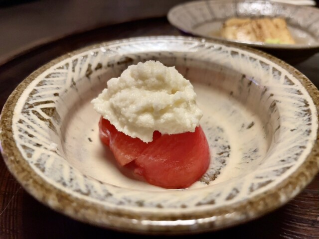 先ずは、お造りで出てきた臼杵の天然鯛の昆布締め!豊後水道の海流で揉まれ、黒潮の豊富で美味しい餌を食べて育った鯛は身が引き締まってて味が濃厚でそれだけでも美味いが昆布締めによって更にしっとりとした旨味が加わっててなかなか素晴らしいお味でした!