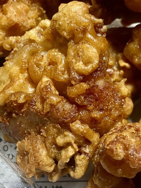 揚げたてを数個、車の中で食べたのですが一つが大きい上に衣はサクサク、中はジューシーで唐揚げの完成形の美味しさがあります。