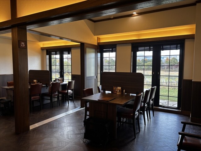 以前から気になっていたこちらのお店でランチをいただきました。窓からは自然の景色が見えて、明るい店内は広々としていました。