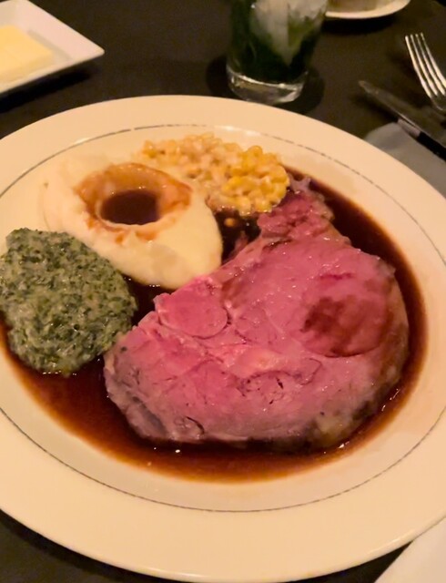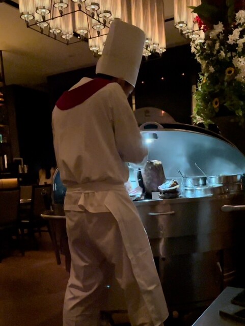 さらに、目の前で行われるサービスカーでのプライムリブのカッティングは、ライブ感あふれるパフォーマンスとしても楽しめます。サーバーが大きな銀のトレイから肉を丁寧に切り分ける姿は圧巻で、その場の臨場感を一層引き立ててくれます。音楽や照明も控えめで、訪れる人すべてがリラックスしながら贅沢な時間を過ごすことができます。