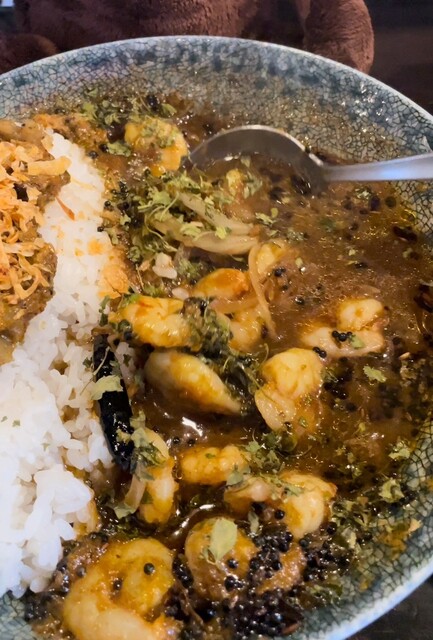 エビのトッピングはプリプリとした食感が特徴で、5辛(辛口)は程よい辛さでスパイスの風味を堪能できます。