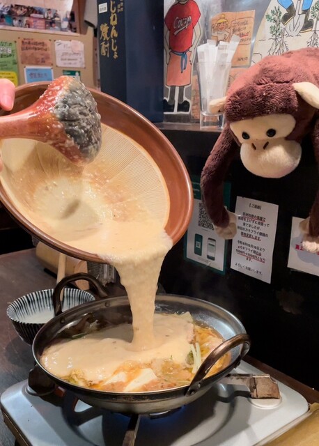そして【自然薯の鍋】は、今回一番印象的だった一品です。鍋が煮立つ中、すりおろした自然薯をトロトロと注ぐ光景がまるでパフォーマンスのようで、二人で「すごいね、これ!」と見入ってしまいました。とろける自然薯が具材に絡み、スープ全体にコクと深みを加えてくれるその味わいは格別でした。パンジーも「こんなに美味しい鍋、また食べたいね」と笑顔いっぱいでした。