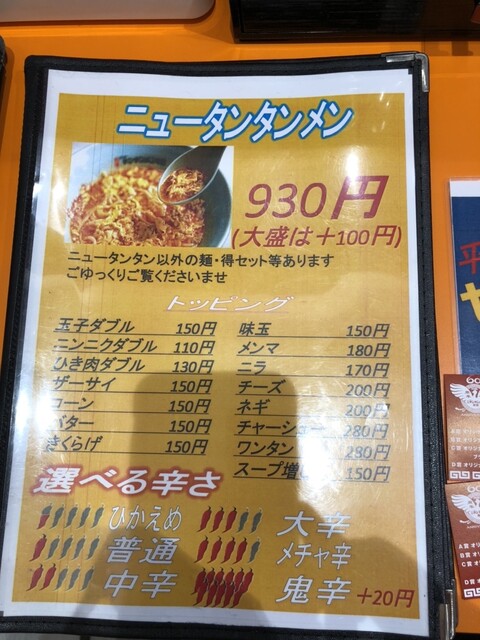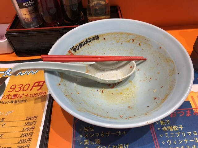 タンタンメン:930 オールダブル(玉子.ニンニク.ひき肉):390 半ライス:150