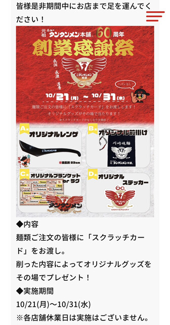 川越店では大晦日にタンタンスープを振る舞うそうです。