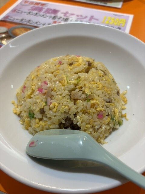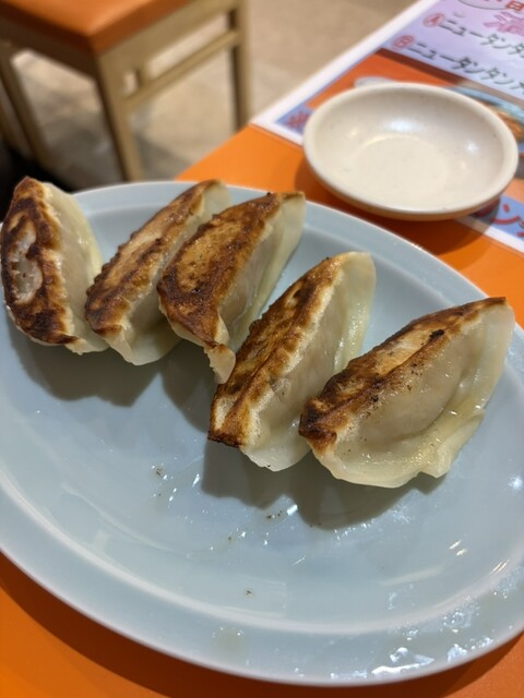 チャーハン大盛り、みそ餃子、焼き餃子、初のタンタン餃子、そして〆のタンタンメン普通と半ライス