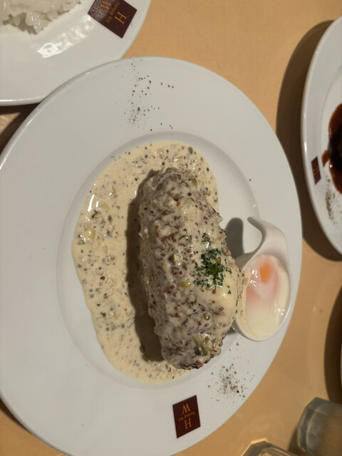 注文はフォアグラバルサミコソースとクリームマスタードソースのハンバーグ。