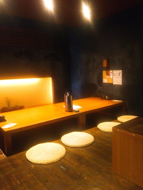 階段を下りて入店!料亭風でお着物姿の御姉様に『こちらへどうぞ。』と上品な感じで、小上がりを上がり掘炬燵個室へご案内…相席がないのでまったり後輩くんと落ち着きます。