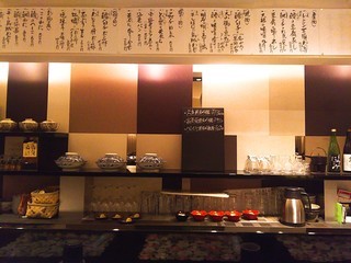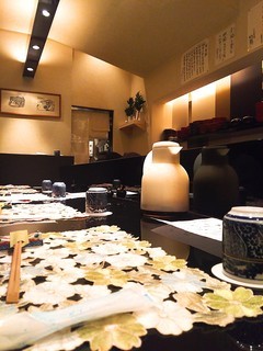 割烹の造りで落ち着きます。靴を脱いで上がってカウンターへ…床暖房のせいか足も暖かいです。お店の方の接客も丁寧で心地良い…。