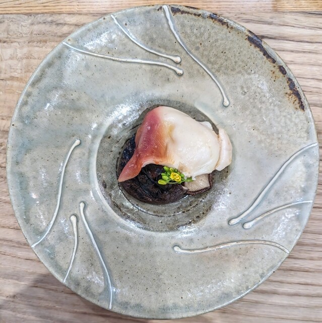 • 椎茸の味で頂く北寄貝が絶品。わたくし醤油を付けて食べるのがあまり好きじゃないんですよ。醤油が勝ちすぎるというか。これは最高でした。