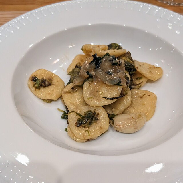 • これなんて塩も使ってないんじゃないかな。塩漬けのカッペリが色気を醸して、若いカーボロネロが風味を加えてます。最高です。