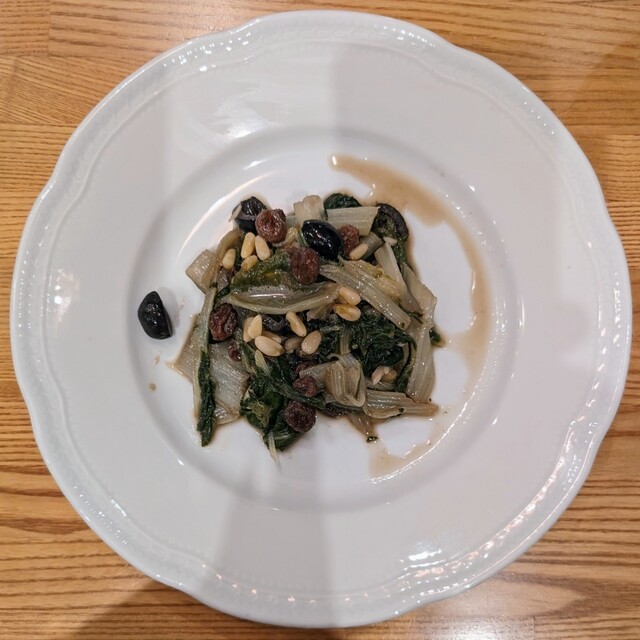 ピスタチオ、松の実、レーズン、ペコリーノ・サルド、白インゲン豆。カジキに加えるこれぞイタリアな足し算。素晴らしい!