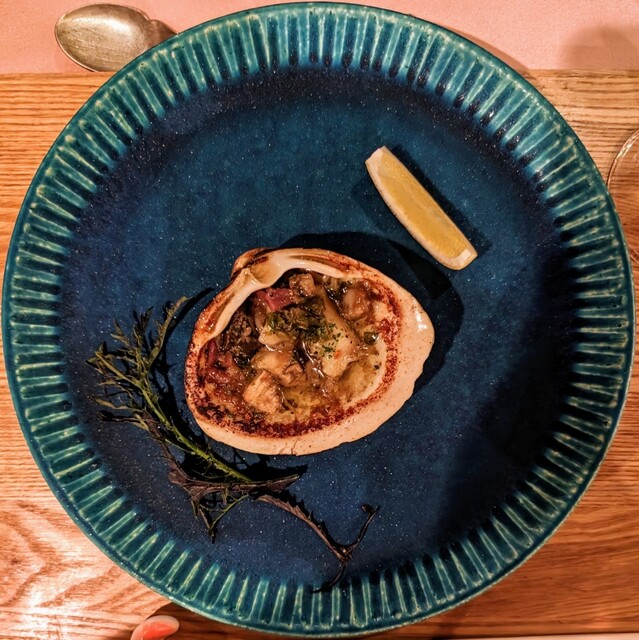 ホッキ貝と春の息吹のコキールアヒージョ