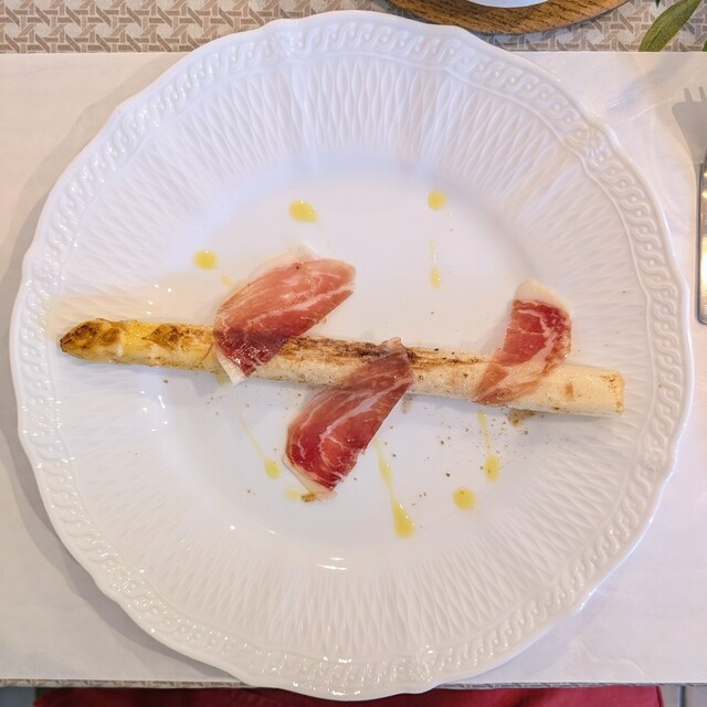 北海道赤井川村のホワイトアスパガスに、発酵バターと秋田県グランビア生ハム工房さんの無添加2年半熟成ハム。