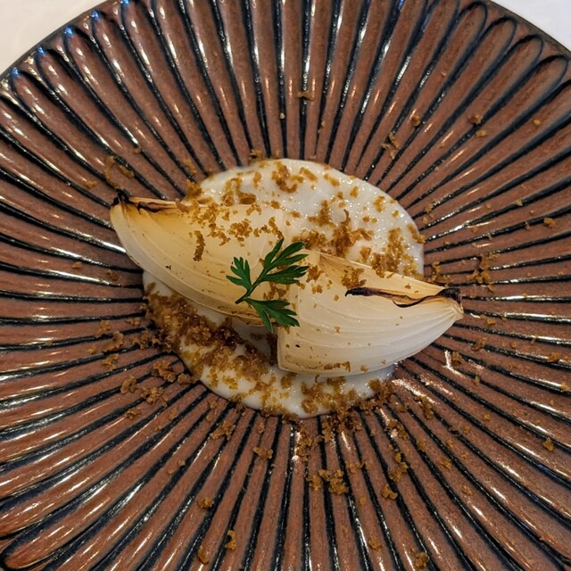 安藤ファームさんの無農薬無化学肥料玉ねぎに、玉ねぎと甘酒のソース、サルディーニャ産のカラスミ。