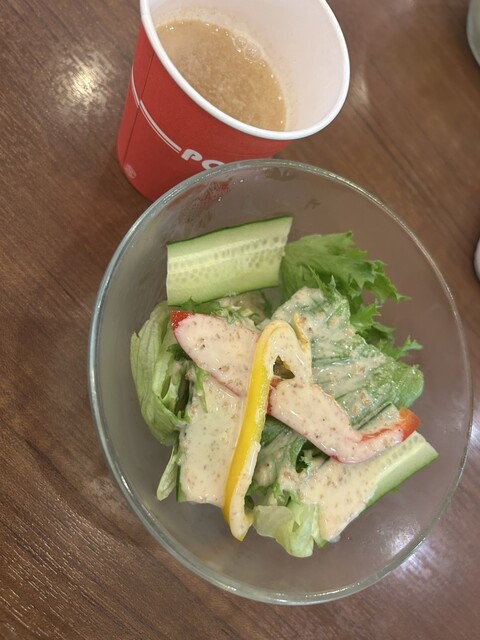 セットでサラダスープドリンクアイス唐揚げがついてきて良かったですが、唐揚げが小さく少し微妙でした。メインはオムレツを選びとても高くなってしまいましたが、量が多く途中で飽きてしまいまし。ドリンクのお代わりがテイクアウトで出来るのがとても有難いです。