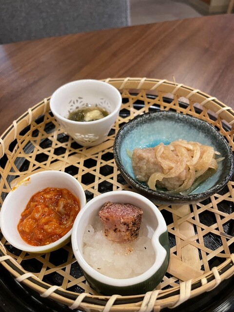 お通し:4種類の小鉢が少しずつ楽しめるのが嬉しいポイントです。
