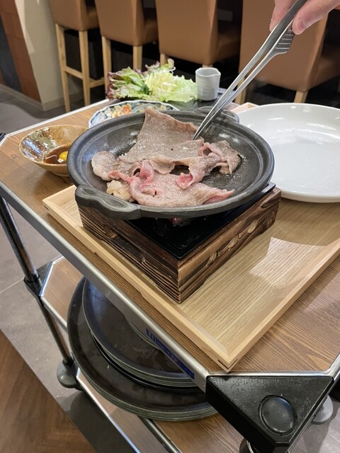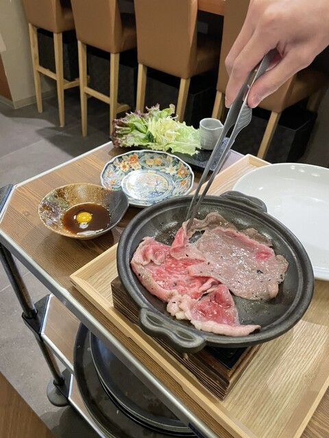 「黒毛和牛リブステーキの焼きしゃぶ」は、お店の方がテーブルの横で丁寧に焼き上げてくれます。絶妙な火加減で提供されるため、できたてのとろけるような柔らかさを堪能できます。