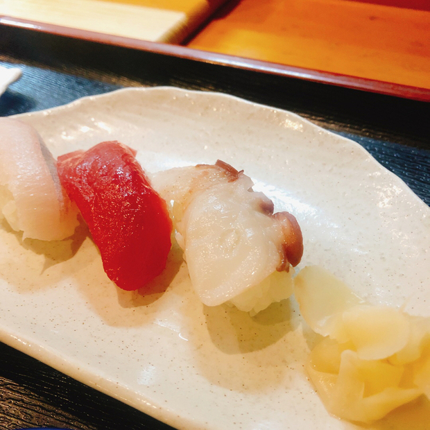 お寿司はやっぱりここにきたらバッテラ食べたいし、お寿司の海苔がほんと美味しいの。