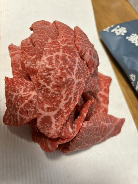 今日は赤身、並カルビ、特上ホルモンをお願いしました。そして貯まっているスタンプカードを初めて交換。なんとカード4枚で、上ロース(899円)400gと交換できました!